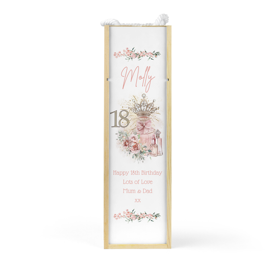 Personalised Wooden Wine Bottle Gift Box - 18th Birthday Crown Design