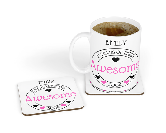 Personalised Mug & Coaster - Awesome Birthday Hearts Design