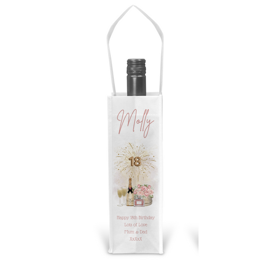 Personalised Bottle Gift Bag - 18th Birthday Champagne & Perfume Design