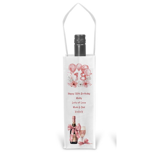 Personalised Bottle Gift Bag - 18th Birthday Pink Balloons Design