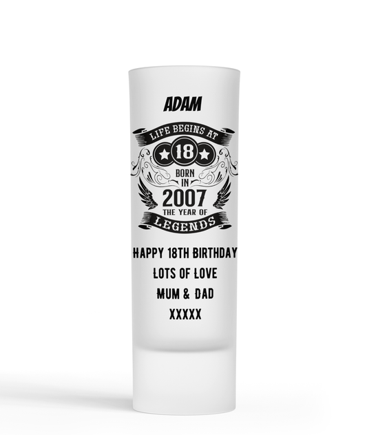 Personalised Shot Glass - Life Begins 18th Birthday Design