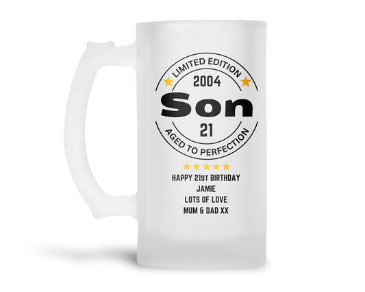 Personalised Frosted Glass Tankard (0.8 Pint) - Son Birthday Design