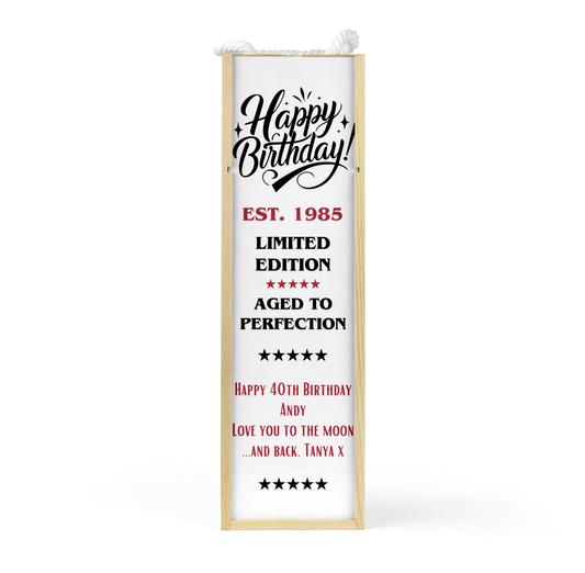 Personalised Wooden Wine Bottle Gift Box - Limited Edition Birthday Design