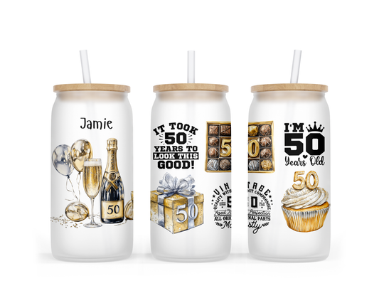 Personalised Frosted Glass Tumbler - 50th Birthday Gold Design