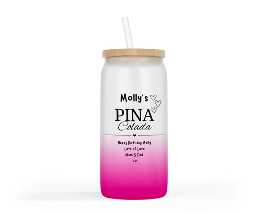 Personalised Frosted Glass Tumbler - Pina Colada Cocktail Design