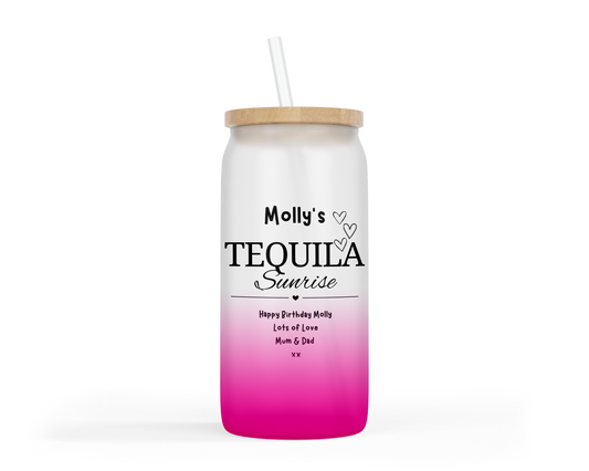Personalised Frosted Glass Tumbler - Tequila Sunrise Cocktail Design