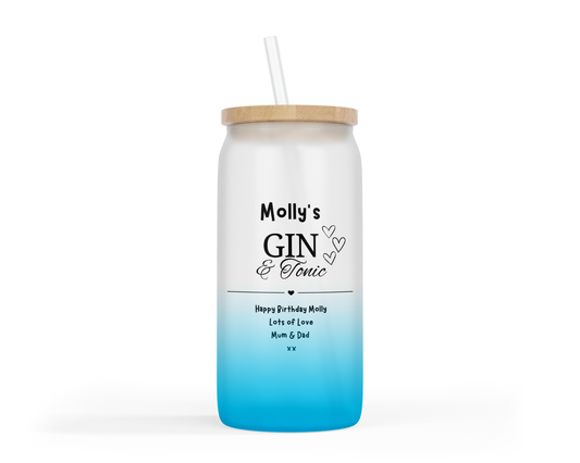 Personalised Frosted Glass Tumbler - Gin & Tonic Design