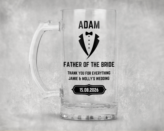 Personalised Clear Glass Beer Tankard Mug - Father of the Bride Wedding Design