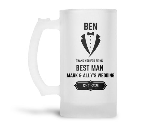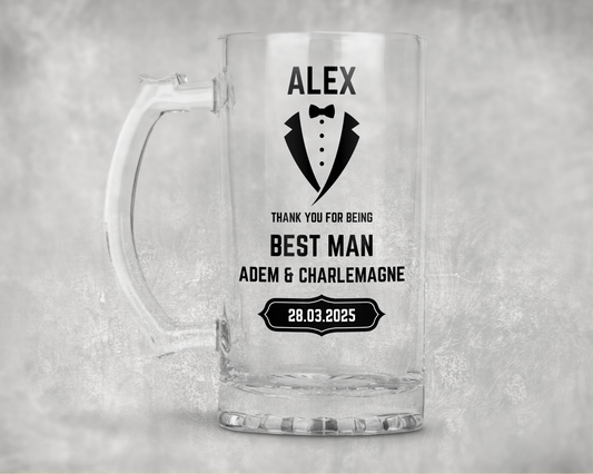 Personalised Clear Glass Beer Tankard Mug - Best Man Wedding Design