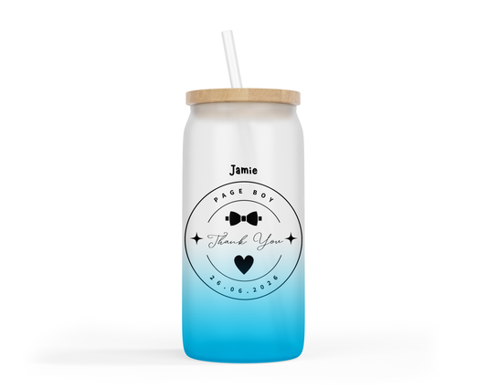 Personalised Ombre Blue Glass Tumbler - Page Boy Wedding Design