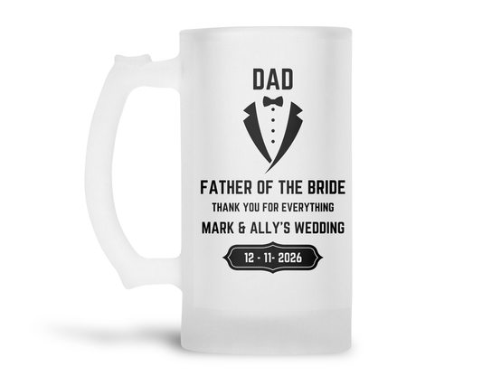 Personalised Frosted Glass Tankard (0.8 Pint) - Father of the Bride Wedding Design