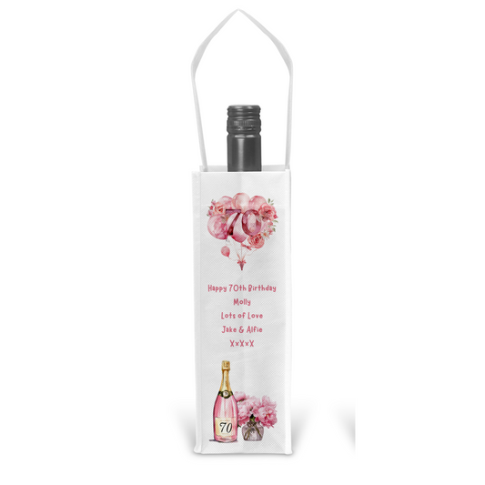 Personalised Bottle Gift Bag - 70th Birthday Pink Balloons Design