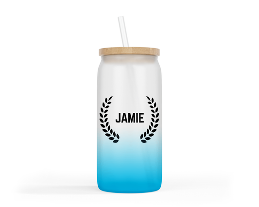 Personalised Ombre Coloured Glass Tumbler - Leaves Name