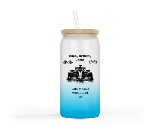 Personalised Ombre Coloured Glass Tumbler - Formula One Design