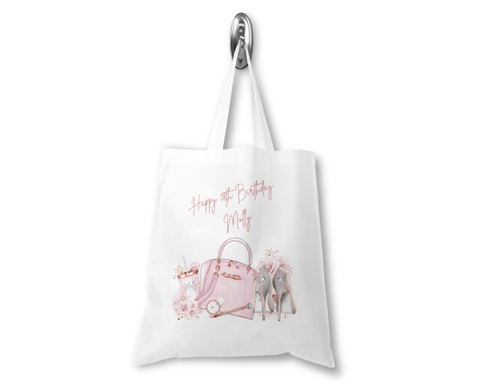 Personalised Tote Shopping Bag - Pink Shoes & Handbag Design