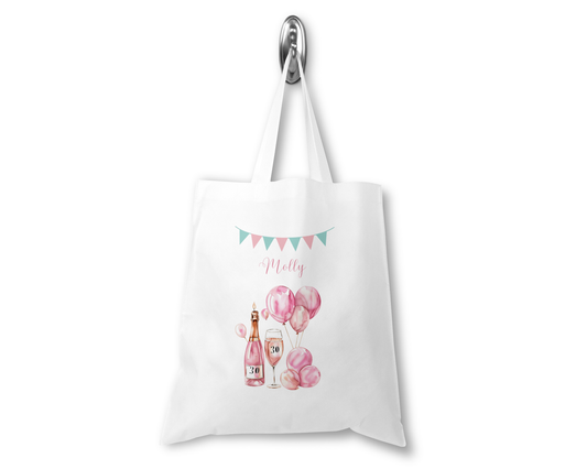 Personalised Tote Shopping Bag - 30th Birthday Pink Balloons Design