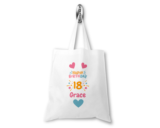 Personalised Tote Shopping Bag - Birthday Hearts & Stars Design