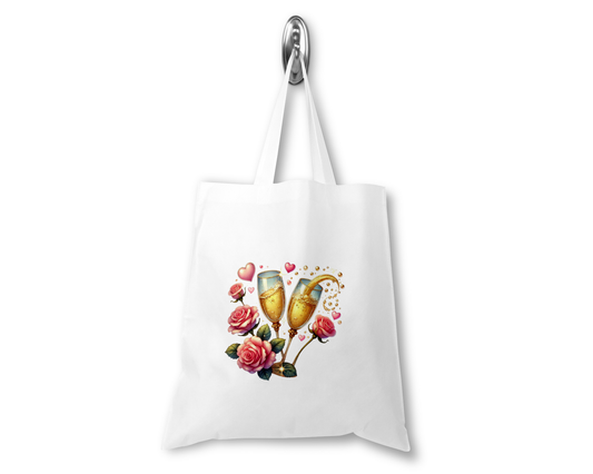 Personalised Tote Shopping Bag - Prosecco & Roses Design