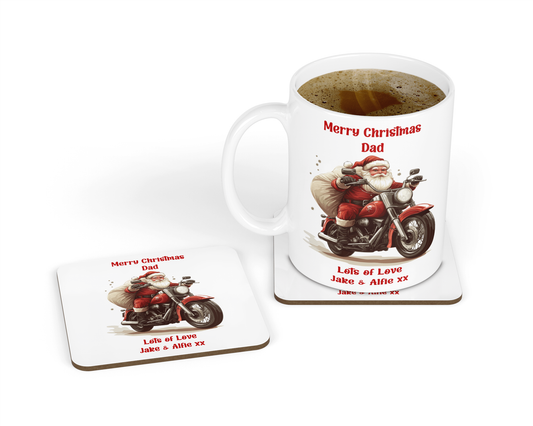 Personalised Mug & Coaster - Christmas Motorbike Design