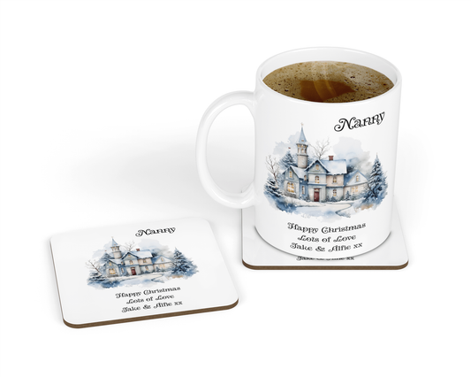 Personalised Mug & Coaster - Christmas Snow Scene Design