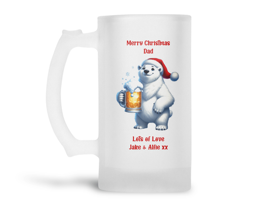 Personalised Frosted Glass Tankard (0.8 Pint) - Christmas Polar Bear Design