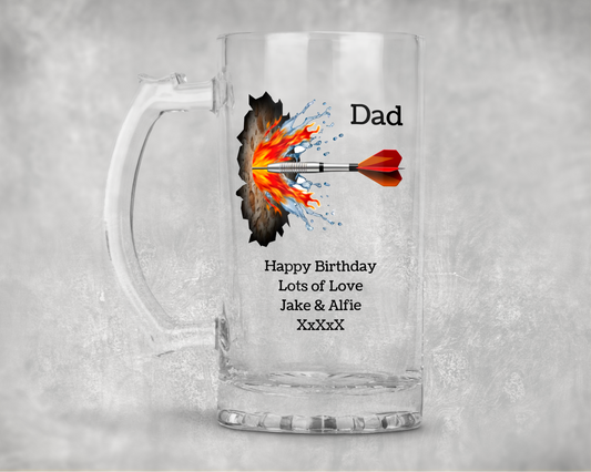 Personalised Clear Glass Beer Tankard Mug - Darts Design