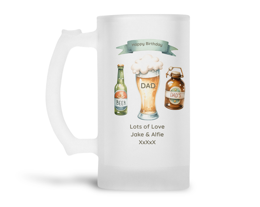 Personalised Frosted Glass Tankard (0.8 Pint) - Beer Design