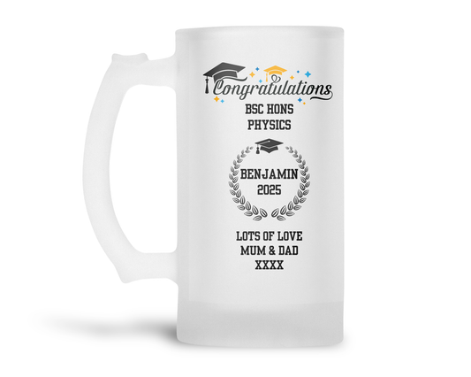 Personalised Frosted Glass Tankard (0.8 Pint) - Graduation Design