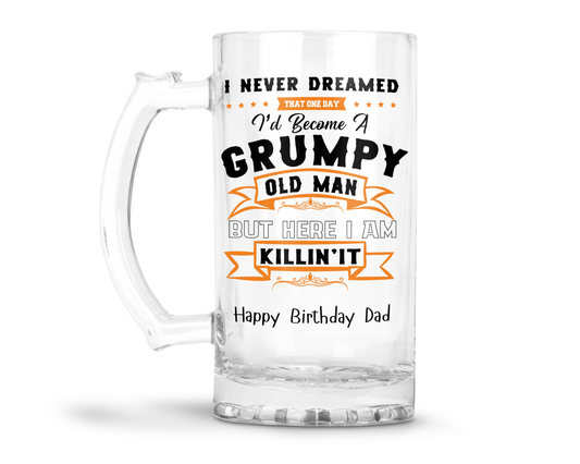 Personalised Clear Glass Tankard (0.8 Pint) - Grumpy Old Man Design