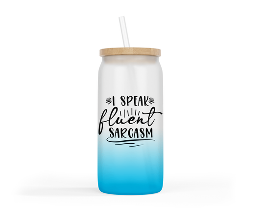 Ombre Coloured Glass Tumbler - "I Speak Fluent Sarcasm"