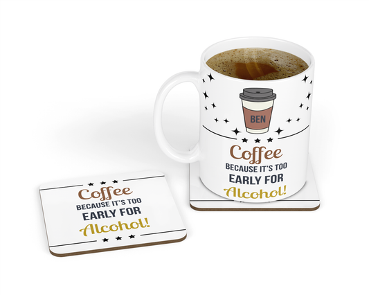 Personalised Mug & Coaster - Too Early For Alcohol Design