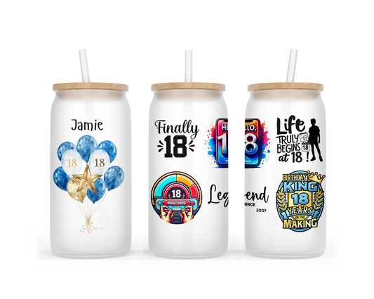 Personalised Frosted Glass Tumbler - 18th Birthday Blue Design