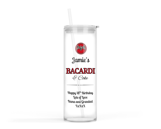 Personalised Tall Glass Tumbler - Bacardi & Coke Design
