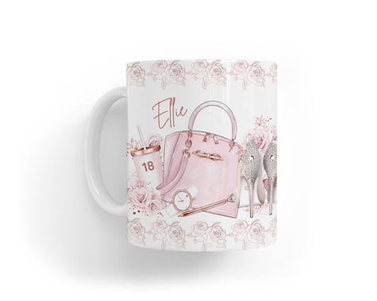Personalised Mug & Coaster - Fabulous Pink Flowers Birthday Design