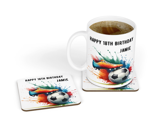 Personalised Mug & Coaster - Christmas Tree Football Design