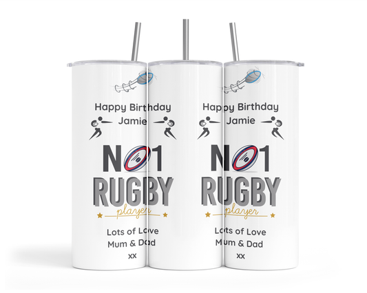 Personalised Tumbler Travel Sports Bottle - No1 Rugby Player Design