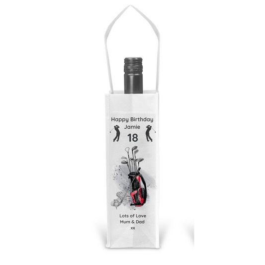 Personalised Wooden Wine Bottle Gift Box - Golf Design