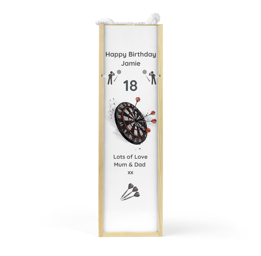 Personalised Wooden Wine Bottle Gift Box - Darts Design