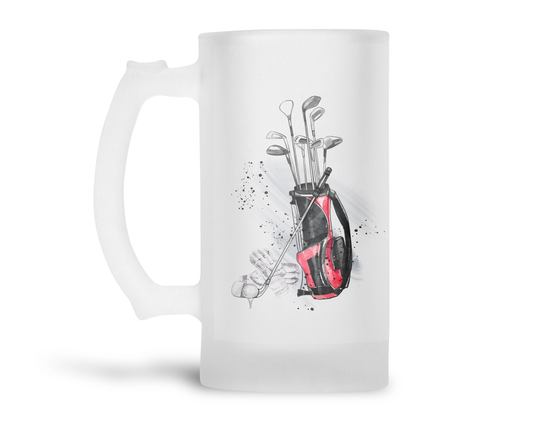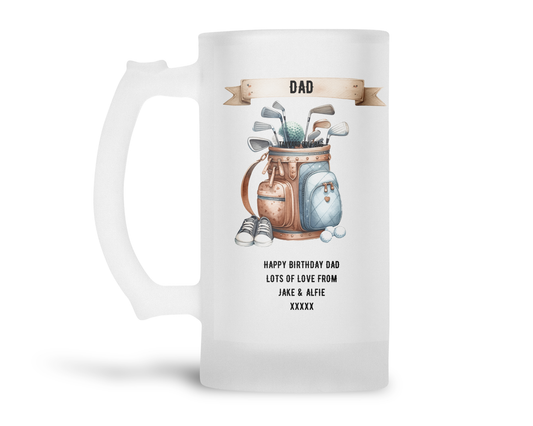 Personalised Frosted Glass Tankard (0.8 Pint) - Golf Bag Design