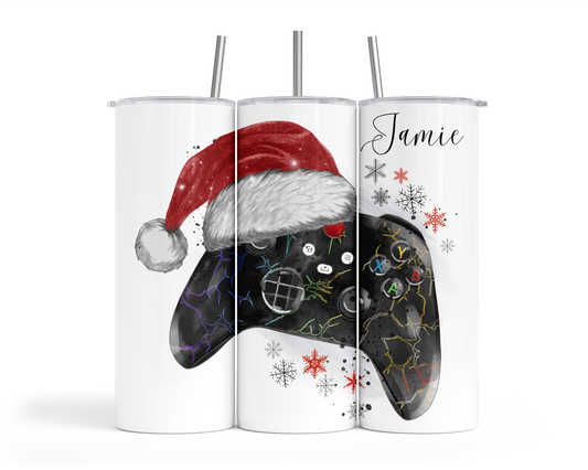 Personalised Tumbler Travel Sports Bottle - Christmas Gaming Santa Hat Design