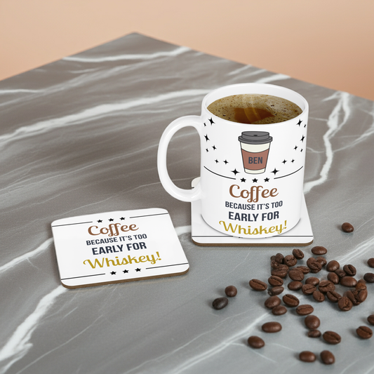 Personalised Mug & Coaster - Too Early For Whiskey Design