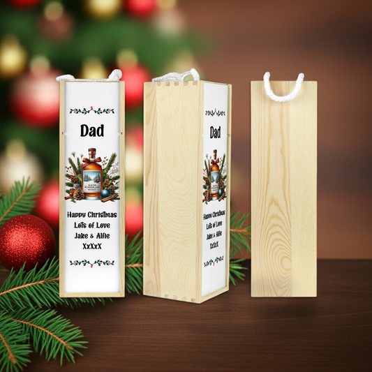 Personalised Wooden Bottle Gift Box - Christmas Whiskey Design