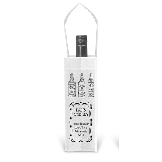 Personalised Bottle Gift Bag - Black & White Whiskey Design