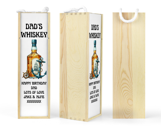 Personalised Wooden Bottle Gift Box - Whisky Father's Day Design