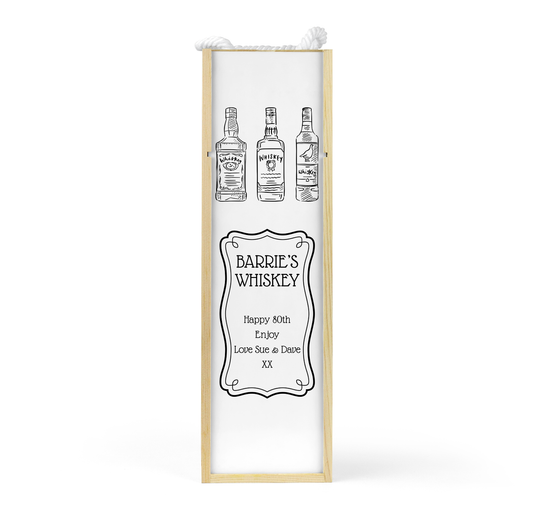 Personalised Wooden Bottle Gift Box - Black & White Whiskey Design