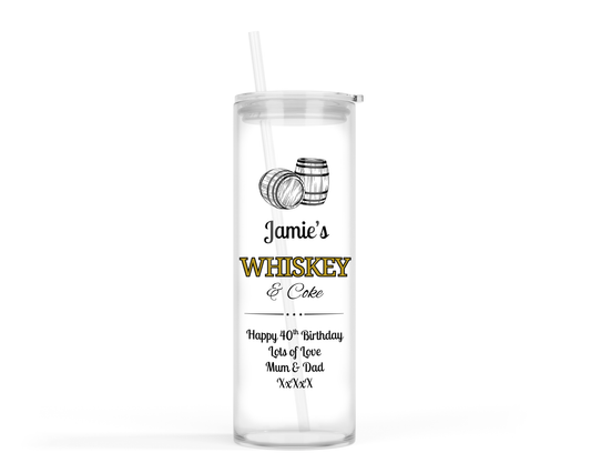 Personalised Tall Glass Tumbler - Whiskey & Coke Design