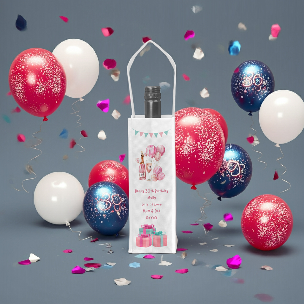 Celebrate a milestone birthday in style with our personalised 30th birthday wine bag!