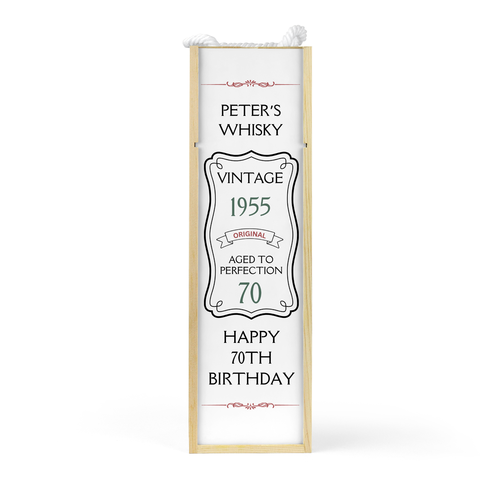 Personalised Wooden Bottle Gift Box - Vintage Birthday Design