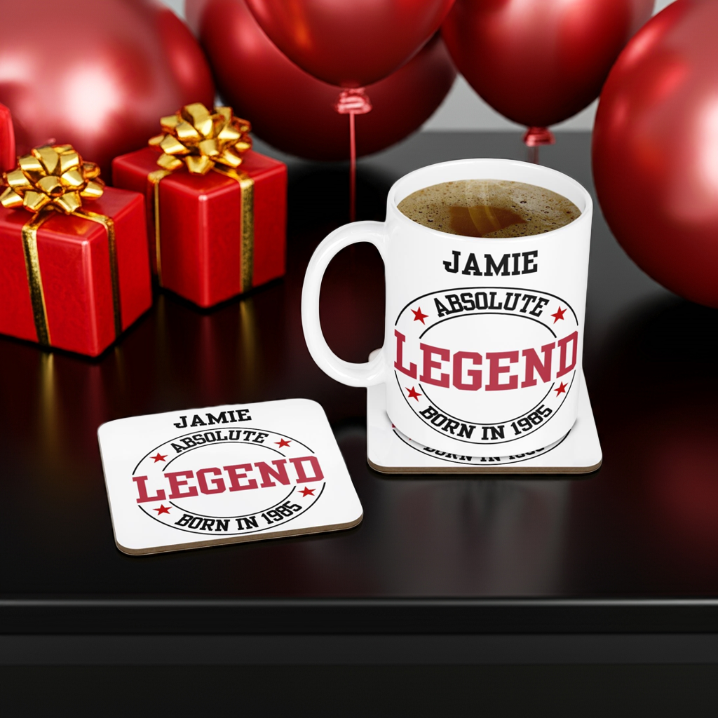 This Coffee/Tea Mug & Coaster gift set makes an ideal Birthday Gift for any age. This personalised mug is a wonderful birthday gift idea for Dad, Nan or a loved one celebrating a special milestone birthday. They can now celebrate with their very own mug!