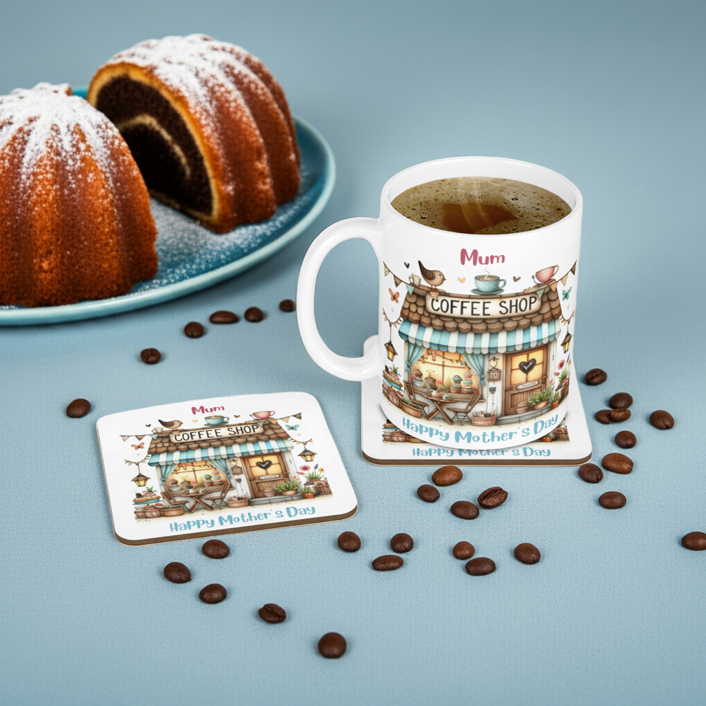 Personalised Mug & Coaster - Coffee Shop Design